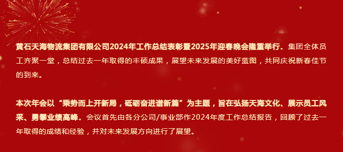 乘勢而上開新局 砥礪奮進(jìn)譜新篇:黃石天海物流集團(tuán)有限公j司2024年工作總結(jié)表彰暨2025年迎春晚會圓滿結(jié)束